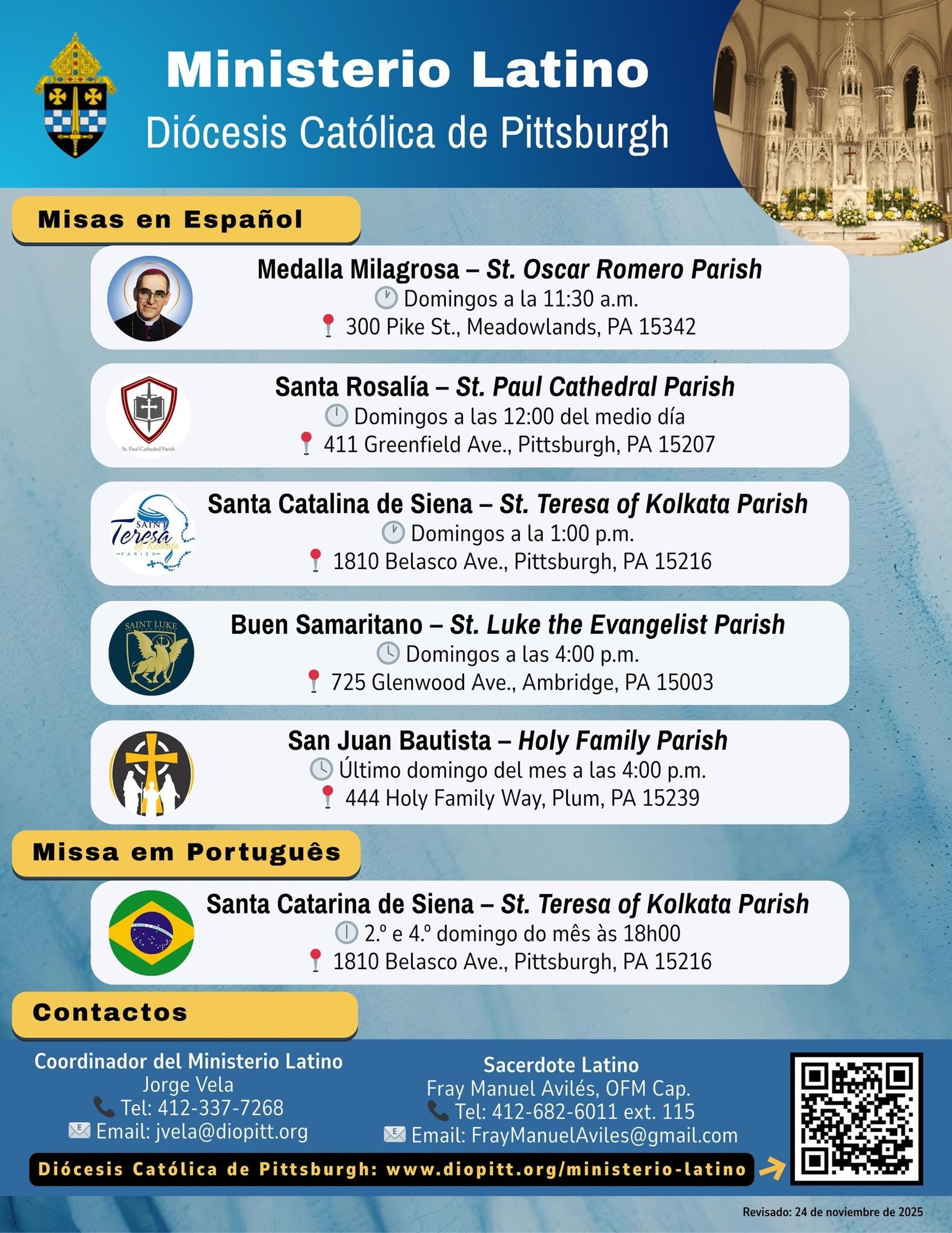 Nuestra diócesis ofrece varias misas en español semanalmente. ¡Consulte el folleto a continuación para conocer los horarios de misas en español cerca de usted!